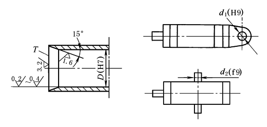 ① 缸筒内径D采用H7或H8级配合,表面粗糙度Ra值一般为0.16~0.32μm,需进行研磨。