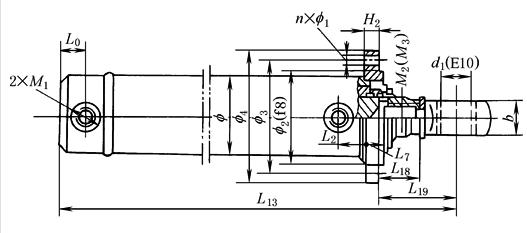 注:1.同上表1注1~注6。 2.图中其他尺寸代号的数值见上表1~表3。 3.中部法兰连接的行程不得小于上表2中的A值。 |