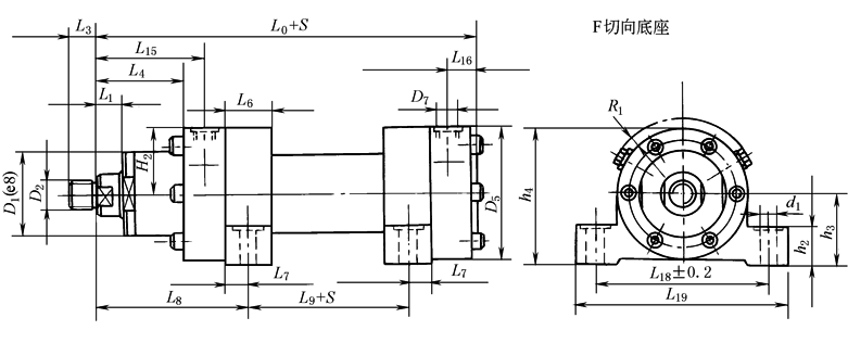 注:1.H2和R1与CD250C缸头法兰安装的液压缸的H、R1相同。 2.见表CD250A、CD250B差动重载液压缸注。 |