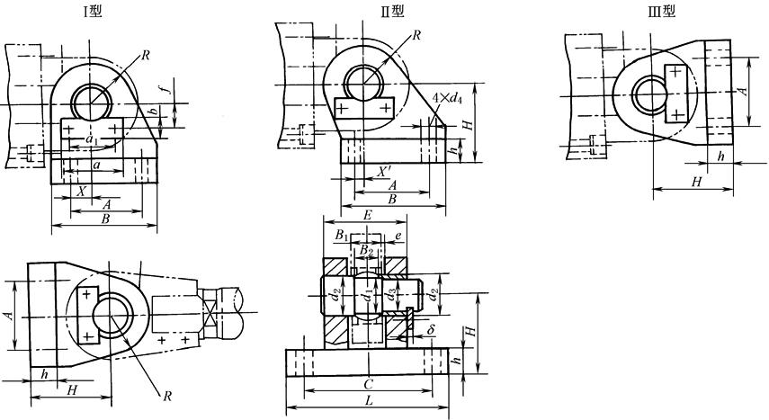 说 明 1.销轴端部要否油杯(JB/T 7940.1)由设计 者确定。 2.为防止支座的紧固螺栓受剪力,可采取键、锥销和挡块等措施,本图未示出。 3.X′尺寸由设计者按需确定。
