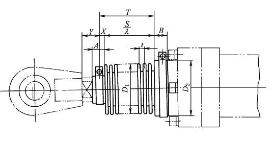 注:1.用途是防尘、防水、防蒸气、防酸碱。 2.主体材质:氯丁橡胶,耐热130℃。 3.S— 液压缸行程,mm;Y— 无防护罩时杆端外露长度,mm;T— 杆端加长,mm,T=S/λ+X(圆整);t—防护罩全压缩时的节距,mm。 4.质量Q 的计算方法: Q=J+△S(kg) 5.型号标记示例:液压缸D/d=200/140,S=1000mm,需配用防护罩,则所选防护罩标记为 防护罩FZ 200/140-1000 这种防护罩是专为C25、D25系列高压重型液压缸设计的,也可用于其他场合,有特殊要求另行商议。 |