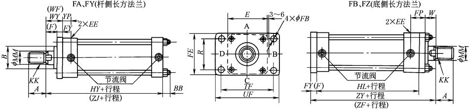 FA、FY(杆侧长方法兰)、FB、FZ(底侧长方法兰) |
