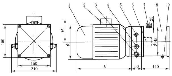 1—电动机;2—接线盒;3—油口;4—溢流阀;5—单向阀;6—液压泵;7—加油口;8—油箱;9—泄油堵 液压动力包工作环境温度应不高于80℃。改变电动机的相位,可实现UB型摆动液压缸的往复摆动。分别调节液压动力包上的两只溢流阀,还可实现UB型摆动液压缸正反向旋转具有不同的输出转矩 |