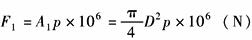 A1 —— 活塞无杆侧有效面积,m2 A2 —— 活塞有杆侧有效面积,m2 p —— 供油压力(工作油压),MPa D —— 活塞直径(即液压缸内径),m d —— 活塞杆直径,m |